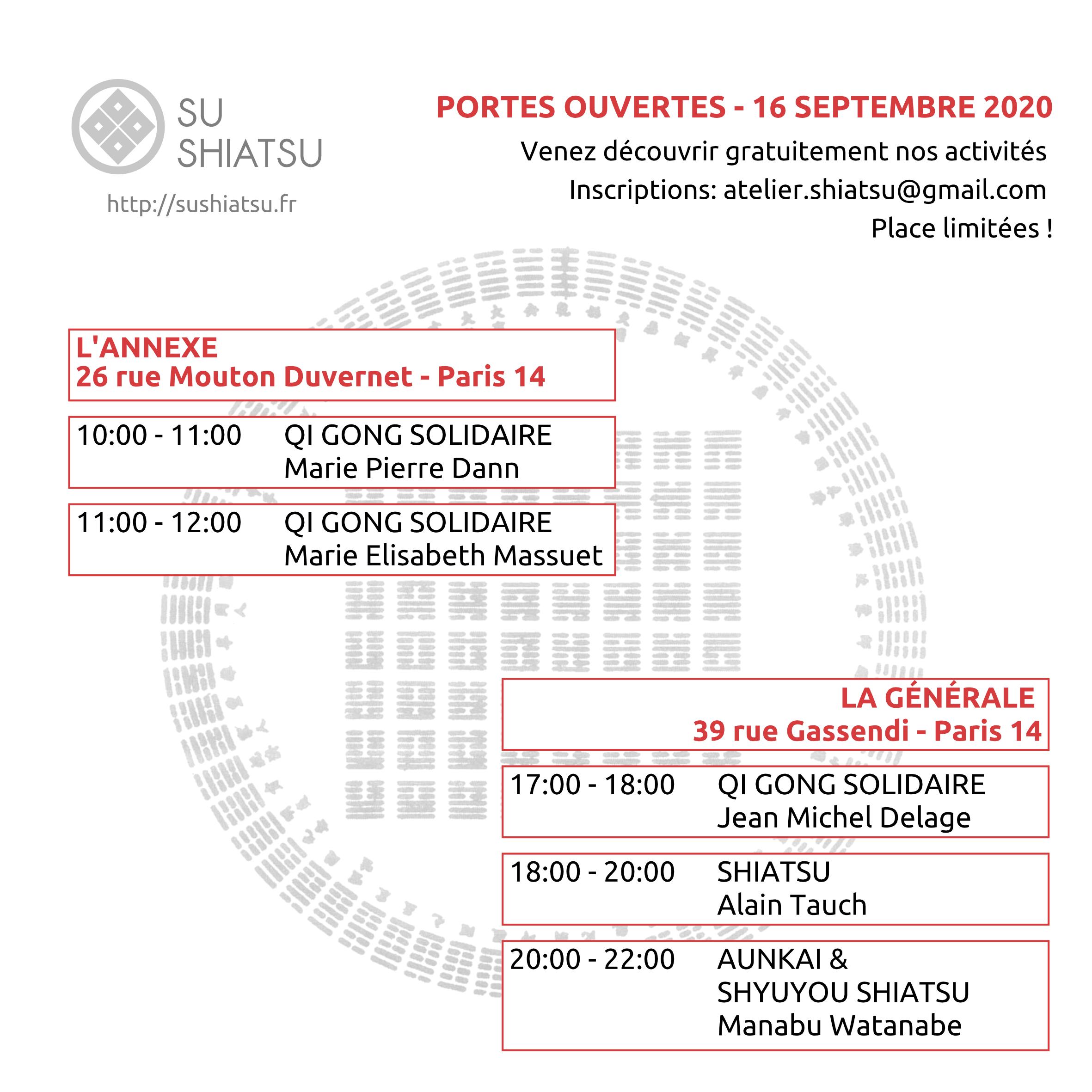 Saison 2020-2021 [english] Informations coronavirusSont assurés: les cours relevant de la formation continue, les cours sur zoom.Il y a des protocoles sanitaires différents pour chaque activité, merci de vous rapprocher de l’enseignant en charge ou de les consulter sur le site. La saison prochaine: Formation annuelleShyuyou Shiatsu Formation annuelleShiatsu Namikoshi Cycle Kappo Cycle 1 Senti & Intuition Cycle 2Senti & Intuition Les activités régulières à Paris: Dispensaires Formation annuelle Senti & Intuition Cours Hebdo Shiatsu Formation annuelle Shyuyou Shiatsu Cours Hebdo Qi Gong Cours & Stages Aunkaï Les évènements: 11 juillet 2021Aunkai & Shiatsu – Bunkaà Lyon 10 juillet 2021Aunkai & Shiatsu – Psoasà Paris 20 juin 2021Découverte Shyuyou Shiatsu 28-30 mai 2021Shiatsu & plantes sauvages Stages Kappō2020/2021 7 Novembre 2020Aunkai & Shiatsu à Lyon avecManabu Watanabe 16 Septembre 2020Portes ouvertes à Paris 14 25 Juillet 2020Aunkai et Shiatsu à Paris avec Manabu Watanabe 27-28 Juin 2020Aunkai & Shiatsu à Paris avec Manabu Watanabe Partager : Partager sur X(ouvre dans une nouvelle fenêtre) X Partager sur Facebook(ouvre dans une nouvelle fenêtre) Facebook J’aime chargement…